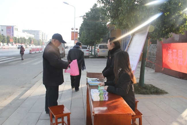 12月4日,遂平县人民法院部分干警在党组成员、政治处主任晋海同志的带领下来到灈阳镇建设路东参加了以“弘扬宪法精神,护航决胜全面小康”为主题的国家宪法日暨全国法治宣传日宣传活动。