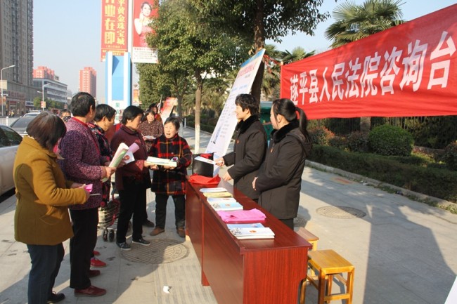 为进一步增强广大妇女的法律意识和法制观念,呼吁全社会对弱势群体的关心和关爱, 3月8日上午,遂平县法院组织干警来到遂平县建设路东街道旁,开展反家庭暴力法制宣传活动。通过法律宣传,强化妇女维权服务。