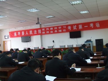 同时,为增强教育的刚性,深化教育成效,把学习内容命题考试,举行了“党风廉政学习暨政治业务理论考试”,并将考试成绩与绩效考评、人事任免挂钩,让廉政教育由虚变实,促使干警对党纪政纪条规“入耳、入心、入脑了然于心,力求通过学习教育进一步规范干警执法行为、严明审判纪律、促进司法公正。